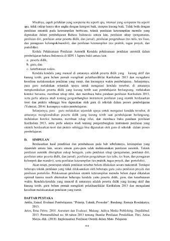 Akan tetapi, penerapan teknik penilaian tersebut belum dilakukan secara maksimal. Terdapat