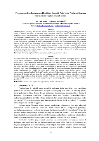 Perencanaan Dan Implementasi Penilaian Autentik Pada Mata Pelajaran Bbahasa