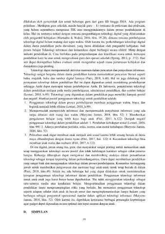 (Lestari, 2018, h.99). Teknologi yang digunakan dalam pendidikan juga memiliki dampak positif