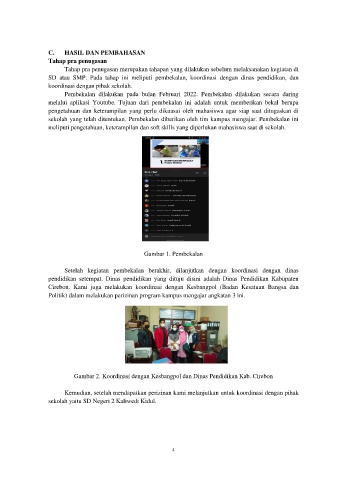SD atau SMP. Pada tahap ini meliputi pembekalan, koordinasi dengan dinas pendidikan, dan