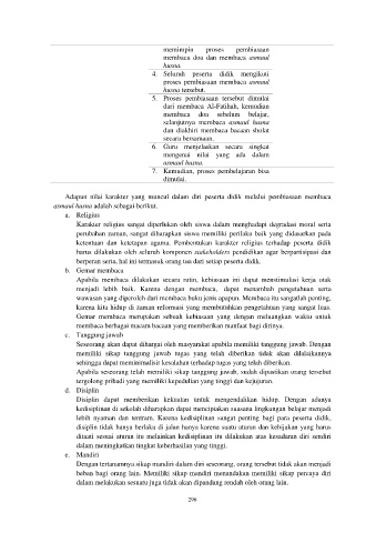 Adapun nilai karakter yang muncul dalam diri peserta didik melalui pembiasaan membaca