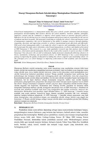 Sinergi Manajemen Berbasis Sekolah dalam Meningkatkan Eksistensi SDN