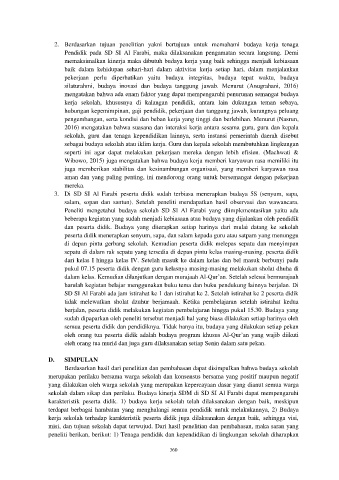 Peneliti mengetahui budaya sekolah SD SI Al Farabi yang diimplementasikan yaitu ada
