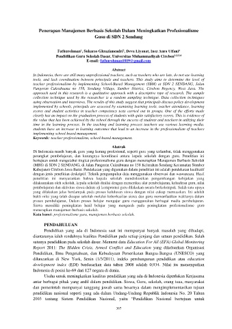 Kata kunci: profesionalisme guru, manajemen berbasis sekolah.