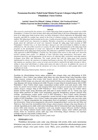 Kata Kunci: Program celengan infaq, karakter, peduli sosial.