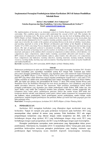 Kata kunci: Perangkat pembelajaran, kurikulum 2013, HOTS (Higher of Order Thinking Skills)