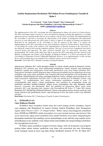 Analisis Implementasi Kurikulum 2013 Dalam Proses Pembelajaran Tematik di