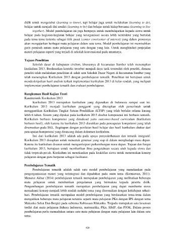 telah menerapkan Kurikulum 2013 dengan pembelajaran tematik. Penelitian ini bertujuan untuk