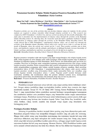 Kata kunci : Pesantren Ramadhan, Pendidikan Karakter, Karakter Religius