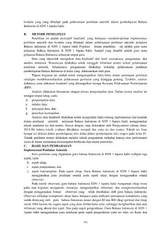 dalam penilaian autentik pelajaran Bahasa Indonesia di SDN 1 Japura bakti. menggunakan