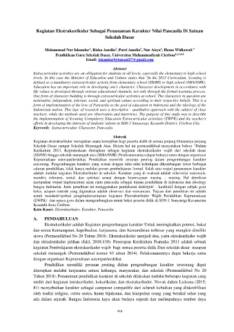 Kata Kunci: Ekstrakurikuler, Karakter, Pancasila