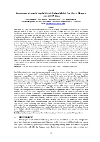 Kata Kunci : Kemampuan Manajerial Kepala Sekolah, Budaya Sekolah dan Kinerja Mengajar Guru