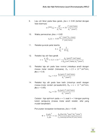 9. Laju alir linier pada fase gerak, jika ε = 0.65 (terikat dengan