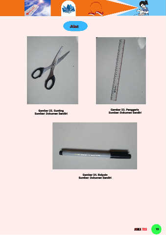 Alat Alat Gambar 22. Gunting Gambar 23. Penggaris Sumber: Dokumen Sendiri Sumber: Dokumen Sendiri Gambar 24. Bolpoin Sumber: Dokumen Sendiri SUKA TES SUKA TES 13