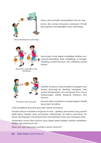 harus ada kegiatan menembak bola, memantulkan bola, dan mengoper bola.