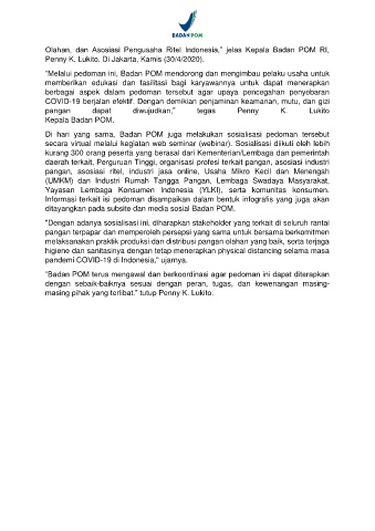 “Badan POM terus mengawal dan berkoordinasi agar pedoman ini dapat diterapkan