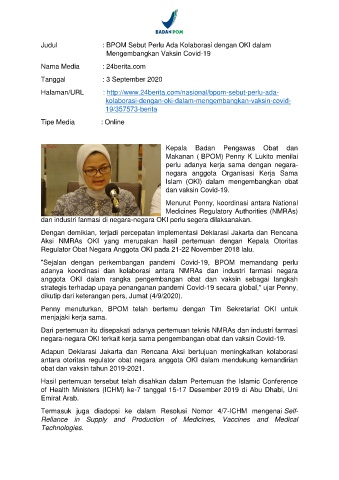 Page 26 - Kolaborasi dengan OKI, Badan POM Dukung Pengembangan Obat dan Vaksin COVID-19 di Negara-Negara OKI_Neat