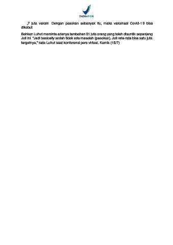 Bahkan Luhut meminta adanya tambahan 31 juta orang yang telah disuntik sepanjang