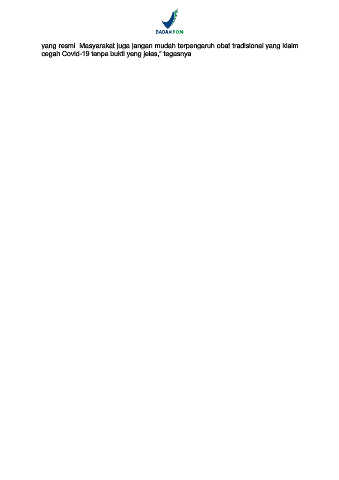 yang resmi. Masyarakat juga jangan mudah terpengaruh obat tradisional yang klaim cegah Covid-19 tanpa bukti yang jelas,” tegasnya.