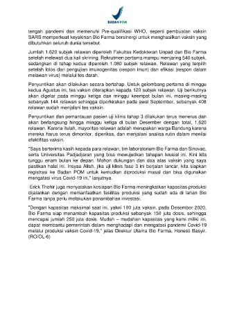 Erick Thohir juga menyatakan kesiapan Bio Farma meningkatkan kapasitas produksi