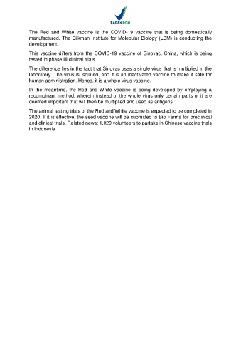 2020. If it is effective, the seed vaccine will be submitted to Bio Farma for preclinical