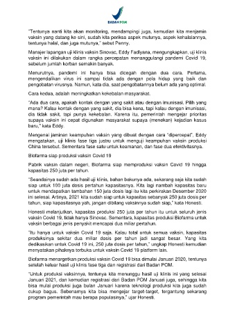 dedikasikan untuk Covid 19 ini, 250 juta dosis per tahun,” ungkap Honesti kemudian