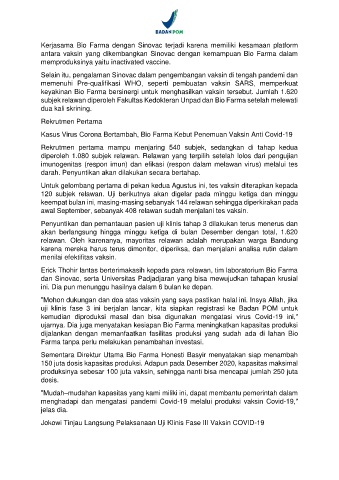 keyakinan Bio Farma bersinergi untuk menghasilkan vaksin tersebut. Jumlah 1.620