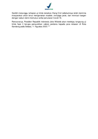 Sambil menunggu tahapan uji klinis tersebut, Kang Emil sebelumnya telah meminta