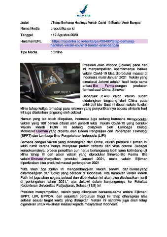Judul : Tetap Berharap Hadirnya Vaksin Covid-19 Buatan Anak Bangsa