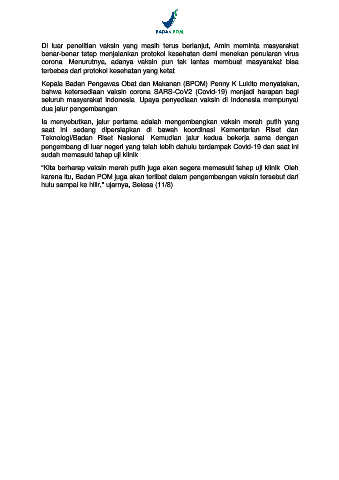 “Kita berharap vaksin merah putih juga akan segera memasuki tahap uji klinik. Oleh