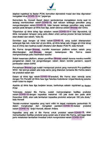 "Indonesia melalui Bio Farma, sudah mempersiapkan fasilitas produksi