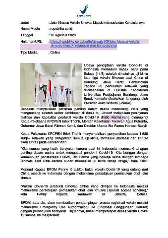 Judul : Jalur Khusus Vaksin Sinovac Masuk Indonesia dan Kehalalannya