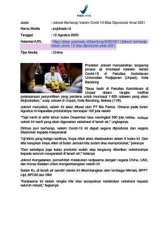 Judul : Jokowi Berharap Vaksin Covid 19 Bisa Diproduksi Awal 2021
