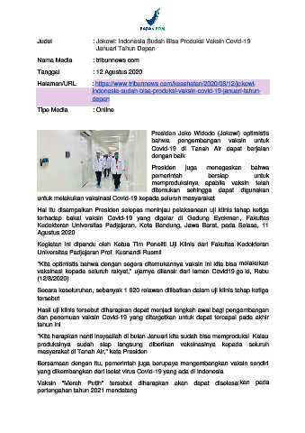 Judul : Jokowi: Indonesia Sudah Bisa Produksi Vaksin Covid-19