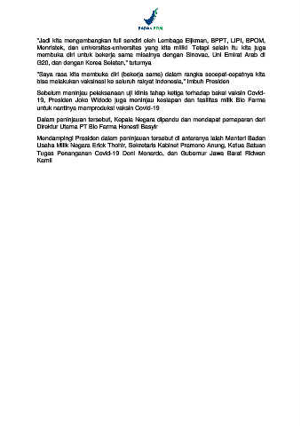 19, Presiden Joko Widodo juga meninjau kesiapan dan fasilitas milik Bio Farma