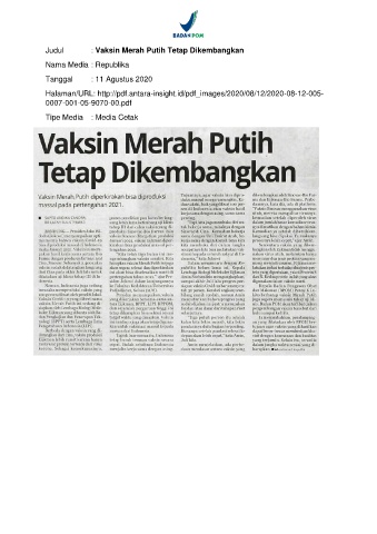 Judul : Vaksin Merah Putih Tetap Dikembangkan