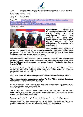 Judul : Kepala BPOM Ungkap Capaian dan Tantangan Kerja 3 Tahun Terakhir