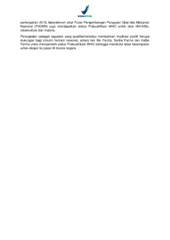 Nasional (P3OMN) juga mendapatkan status Prakualifikasi WHO untuk obat HIV/AIDs,