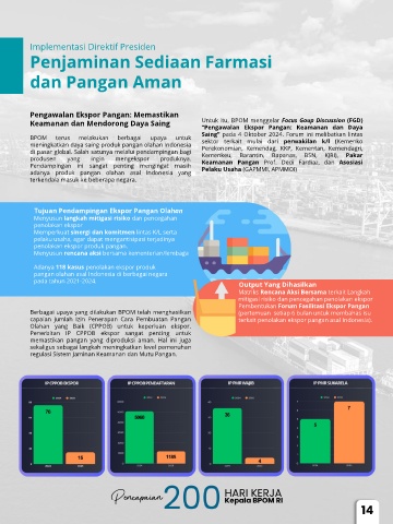 capaian jumlah Izin Penerapan Cara Pembuatan Pangan terkait penolakan ekspor pangan asal Indonesia).