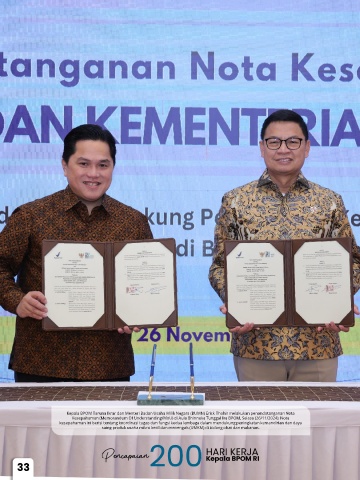 Kepala BPOM Taruna Ikrar dan Menteri Badan Usaha Milik Negara (BUMN) Erick Thohir melakukan penandatanganan Nota
