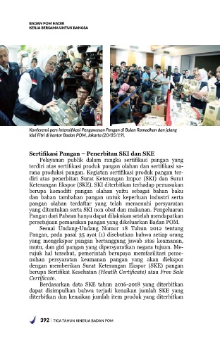 Konferensi pers Intensifikasi Pengawasan Pangan di Bulan Ramadhan dan jelang SKE. Kenaikan jumlah SKE yang diterbitkan menunjukkan