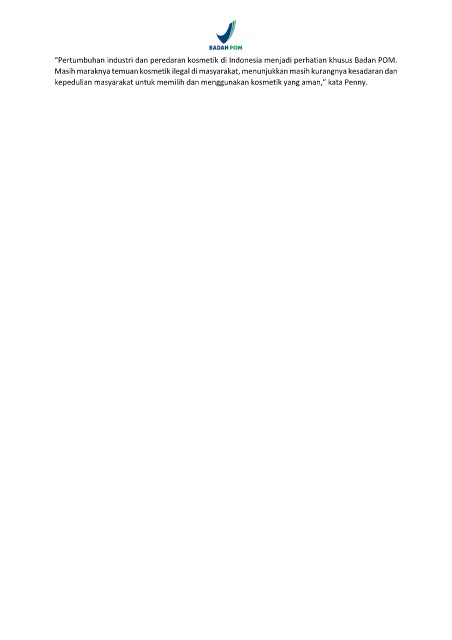 kepedulian masyarakat untuk memilih dan menggunakan kosmetik yang aman,” kata Penny.