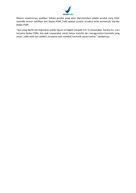 aman. Lebih teliti dan selektif, terutama saat membeli kosmetik secara online,” tambahnya.
