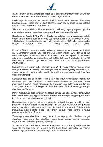 Page 214 - Badan POM Kawal Keamanan, khasiat dan mutu vaksin sinovac