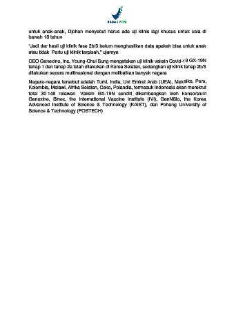total 30.148 relawan. Vaksin GX-19N sendiri dikembangkan oleh konsorsium