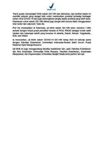 Keamanan untuk vaksin GX-19N dilihat juga sangat baik karena tidak menggunakan