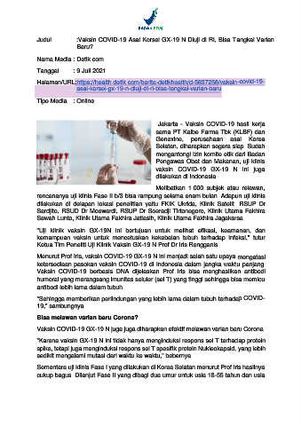 Page 9 - Badan POM Terbitkan PPUK Vaksin COVID-19 GX-19N