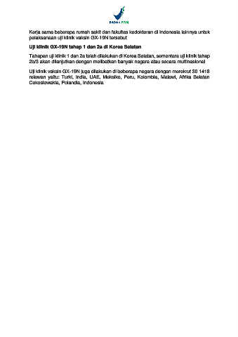 pelaksanaan uji klinik vaksin GX-19N tersebut.