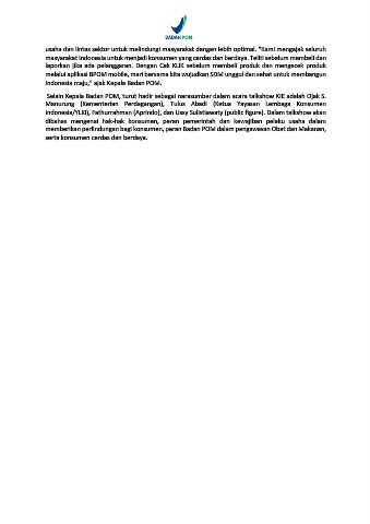 usaha dan lintas sektor untuk melindungi masyarakat dengan lebih optimal. “Kami mengajak seluruh