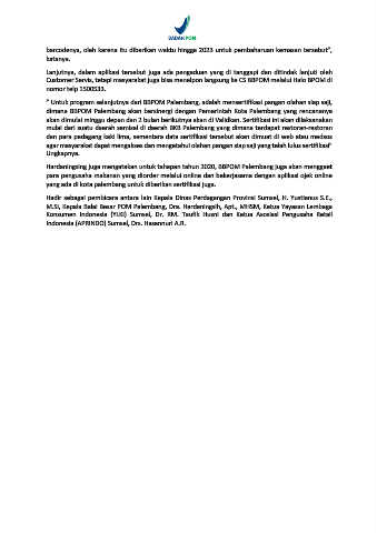 Customer Servis, tetapi masyarakat juga bisa menelpon langsung ke CS BBPOM melalui Halo BPOM di